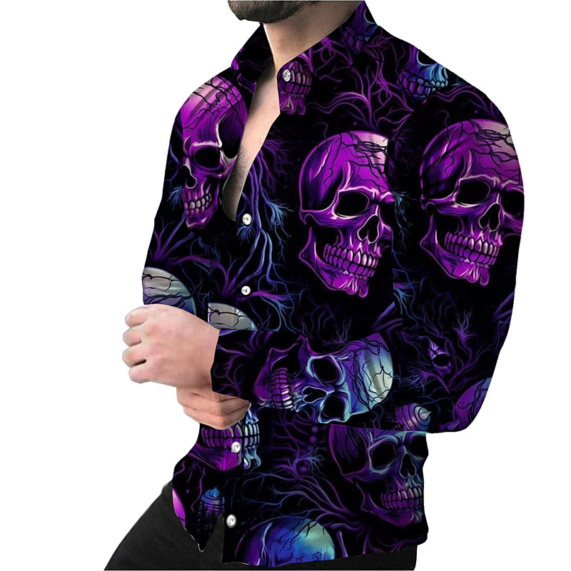 Men's Skulls Shirt Summer Shirt Beach Shirt Long Sleeve Hawaiian Casual Horror Vacation Street Hawaiian Spring Fall Lapel Print Light Yellow Orange red Black Pink Red