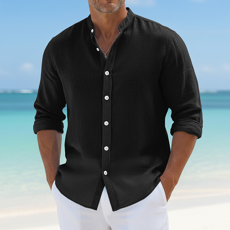 Men's Shirt Summer Shirt Beach Wear Button Up Shirt Plain Casual Daily Black White Pink Orange Long Sleeve Mandarin Collar Summer Spring Summer Clothing Apparel