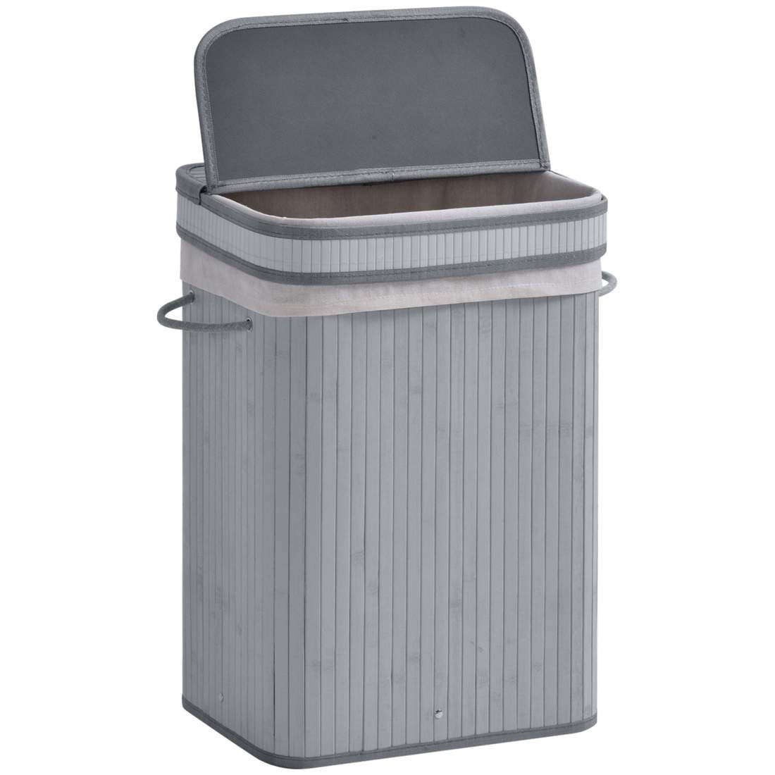 Bambus skittentøyskurv Slank med lokk 70 L vaskekurv med håndtak, avtakbar vaskepose, skittentøyskurver til vaskerom Soverom Bad