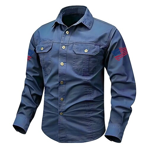 Per uomo Bandiera Americana Camicia da lavoro Camicia Western Camicia cargo Manica Lunga Pantaloni Tattici Vintage Retrò Sport all'Aperto Abbigliamento da lavoro Primavera Autunno Collo ripiegato Due