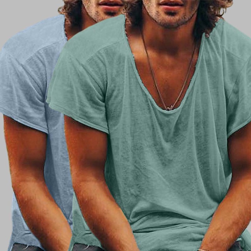 Men's T Shirt Short Sleeve V Neck Summer Solid Color Casual Esencial 2 Piece Multi-pack Casual Sports Dark BlueWhite BlackGrey Light Grey Army Green Top Tee for Men