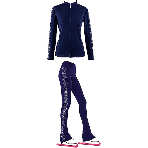 giacca da pattinaggio artistico con pantaloni, abbigliamento da pattinaggio sul ghiaccio da donna e da ragazza, nero, elastico, abbigliamento da pattinaggio per competizione, termico, caldo, con