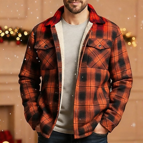 Per uomo Cappotto Invernale Giacca Camicia Giacca in Pile Quotidiano All'aperto Calore Termico Tasca Autunno Inverno Plaid Streetwear Quotidiano Collo ripiegato Regolare Rosso Arancione Verde Giacca