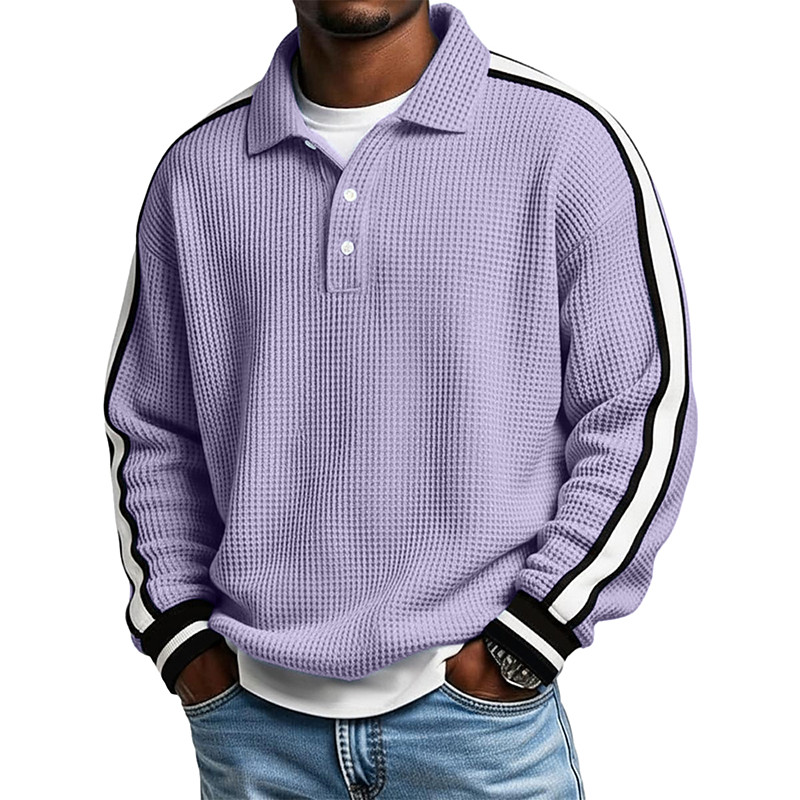Men's Waffle Polo Shirts Textured Casual Vacation Turndown Long Sleeve Fashion Solid Color Plain Buttons Plain Fall Spring Fall Regular Fit Black Light Green Green Light Blue Purple Dark Blue