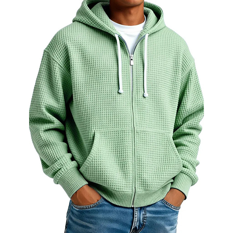 Men's Hoodie Full Zip Hoodie Waffle Hoodies Apricot Black White Light Green Army Green Hooded Plain Textured Sports Outdoor Casual Daily Streetwear Cool Sportswear Spring Fall Fall Winter
