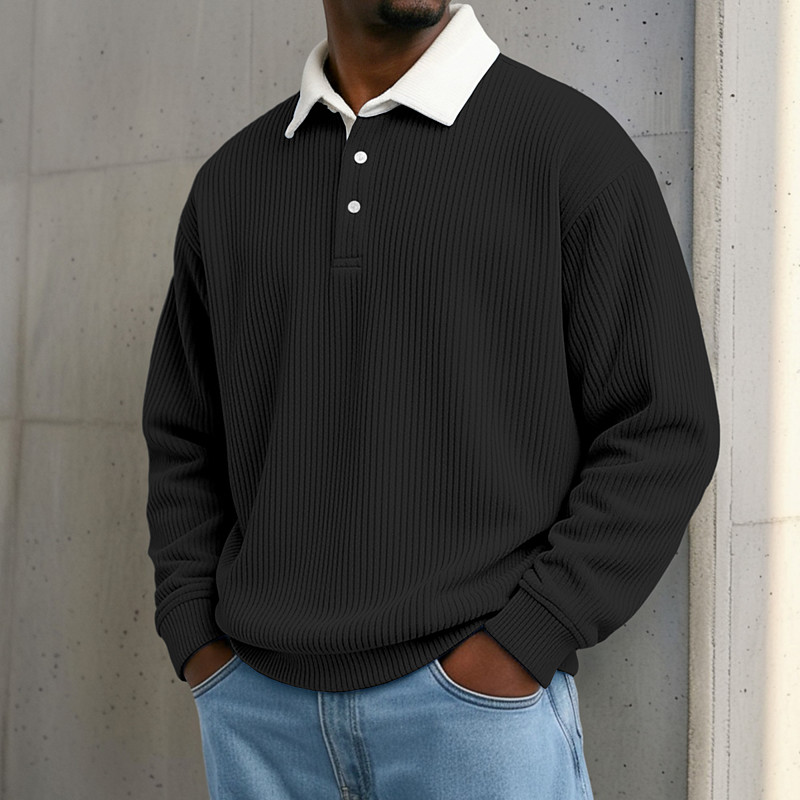 Men's Textured Muscle Shirt Formal Work Ribbed Polo Collar Long Sleeve Warm Basic Solid Color Buttons Spring Fall Slim Fit Black White Yellow Navy Blue Green Light Grey Textured