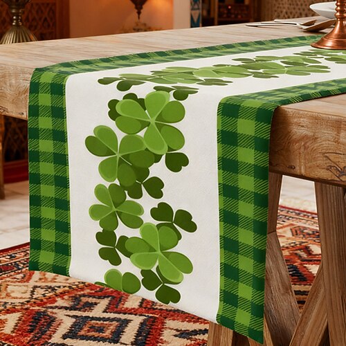 Tischläufer zum St. Patrick's Day, Kleeblatt Tischdecke mit Koboldmuster, grüner Stoff, hitzebeständig, für die Heimdekoration, Dekoration zum St. Patrick's Day.