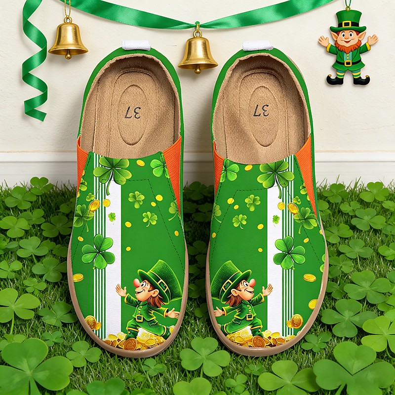 Women's St. Patrick's Day Slip-On Shoes – Green Clover Print Casual Flats with Comfortable Sole, Stylish and Fun Shoes for Celebrations, Festivals and Everyday Wear
