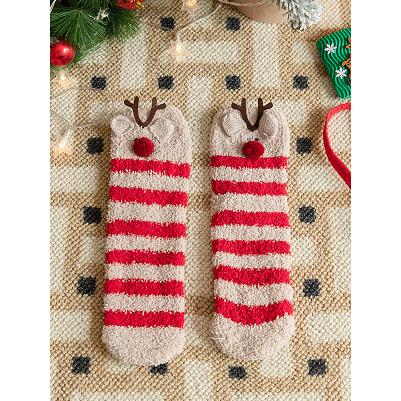 Christmas Socks for Women, Thick Coral Fleece Floor Socks, Non-Shedding Plush Socks with Reindeer Santa Claus Design, Cozy Warm Holiday Socks