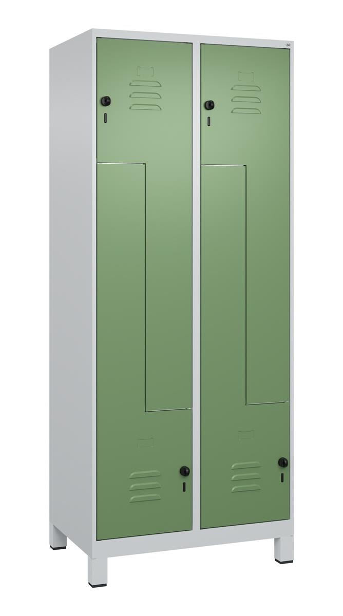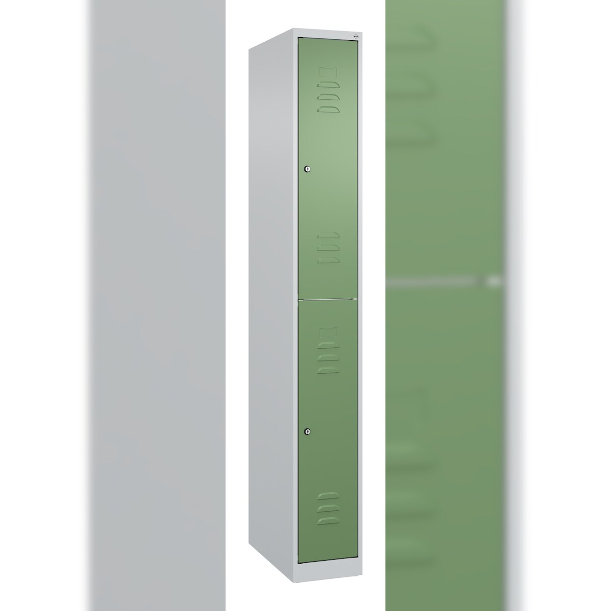 C+P Spind Classic PLUS, 2 Abteile, HxBxT 185x25x50cm, Zylinderschloss, Hellgrau/Resedagrün von PROREGAL