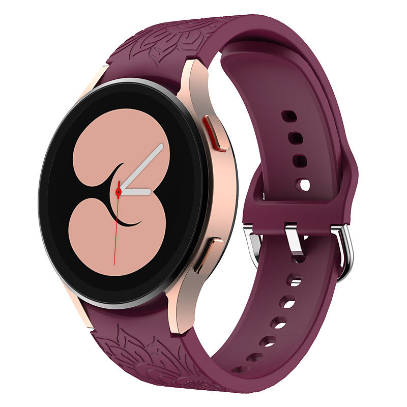 Watch Band for Samsung Galaxy Watch 7/6/5/4 40/44mm, Watch 6 Classic 43/47mm, Watch 4 Classic 42/46mm Silicone Replacement Strap Adjustable Sport Band Modern Buckle Flower Engraved Wristband