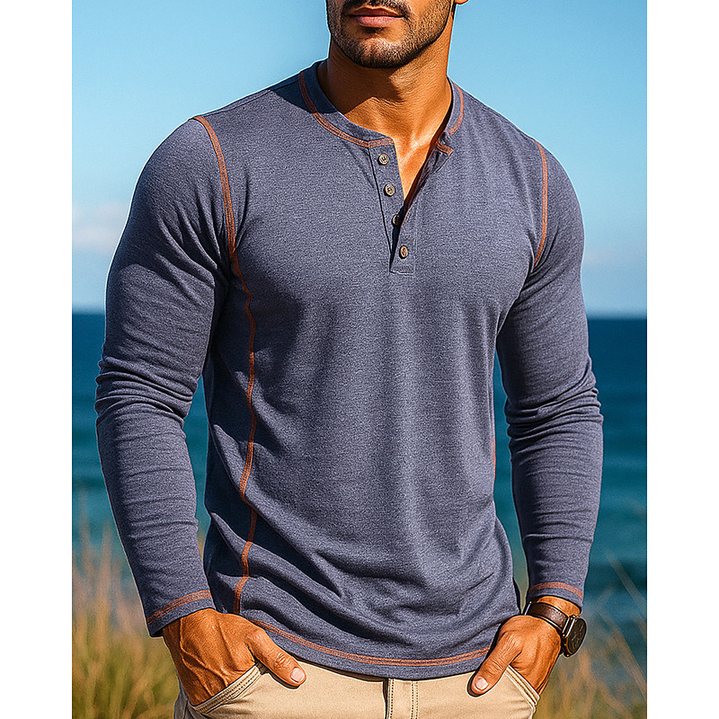 Men's Casual Shirt Hiking top Henley Shirt Long Sleeve Top Outdoor Breathable Polyester Black White Red Tennis Golf Running