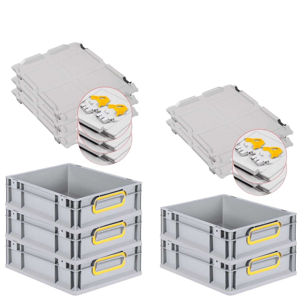 PROREGAL 5x Eurobox NextGen Color mit Scharnierdeckel & Verschlüssen | HxBxT 12x30x40cm | 11 Liter | Griffe gelb geschlossen | Glatter Boden