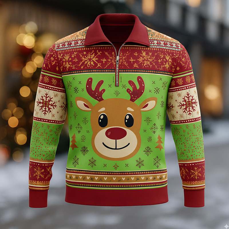 Christmas Men's Cartoon Elk Polo Long Sleeve Turndown Modern Leisure Daily Casual Daily Zipper 3D Print Spring Fall Winter Red Green