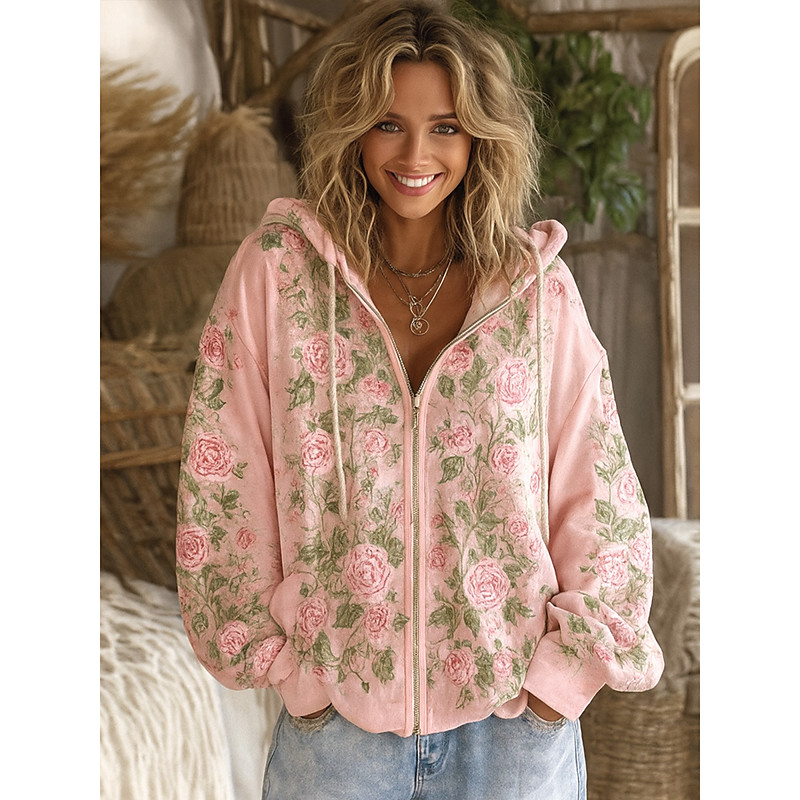 Women's 3D Print Vintage Boho Hoodie Patchwork Hoodie Sweatshirt Floral Zip Up s Floral Punk Active Vintage Long Sleeve Hooded Regular Tops Home Dailywear Casual Pink Red Beige Fall Winter