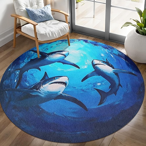 Tappeto con illusione ottica 3D, design di squalo sottomarino, stampa piatta 2D, morbido tappetino antiscivolo per soggiorno, camera da letto, tappeto decorativo marino unico per la casa