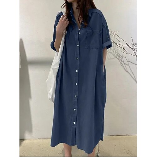 Per donna Abito Midi Abito a Tubino Casual Quotidiano Vestibilità comoda Semplice Manica 3/4 Bavero Blu Nero Blu scuro Estate Primavera