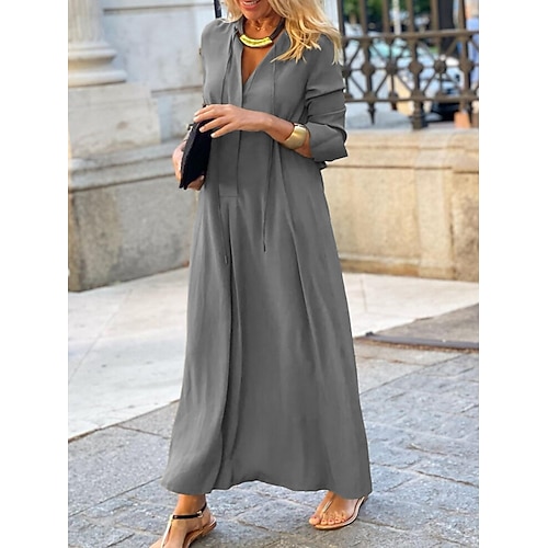 Per donna Abito maxi Abito Camicia Vestito Casual Elegante Moda Moderno All'aperto Vacanza Uscire Vestibilità comoda Semplice Manica Lunga Scollo a V Nero Rosso Blu Reale Marrone Primavera Autunno