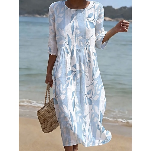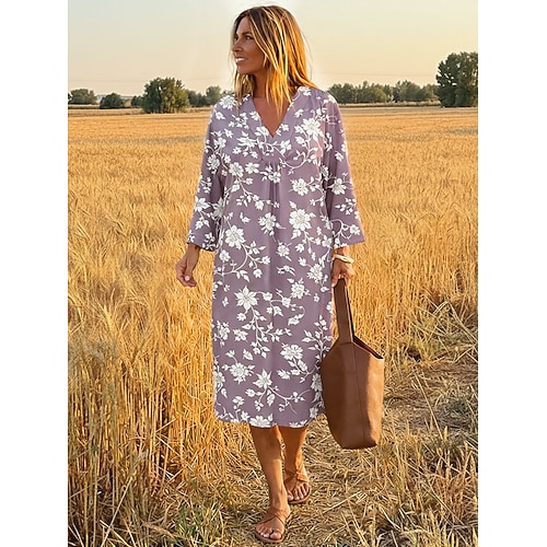 Per donna Abito Midi Vestito Estivo Abito Estivo Vacanza Casual Boho Ferie Vestibilità comoda Floreale Grafico Mezza Manica Girocollo Blu Rosa Viola Estate Primavera