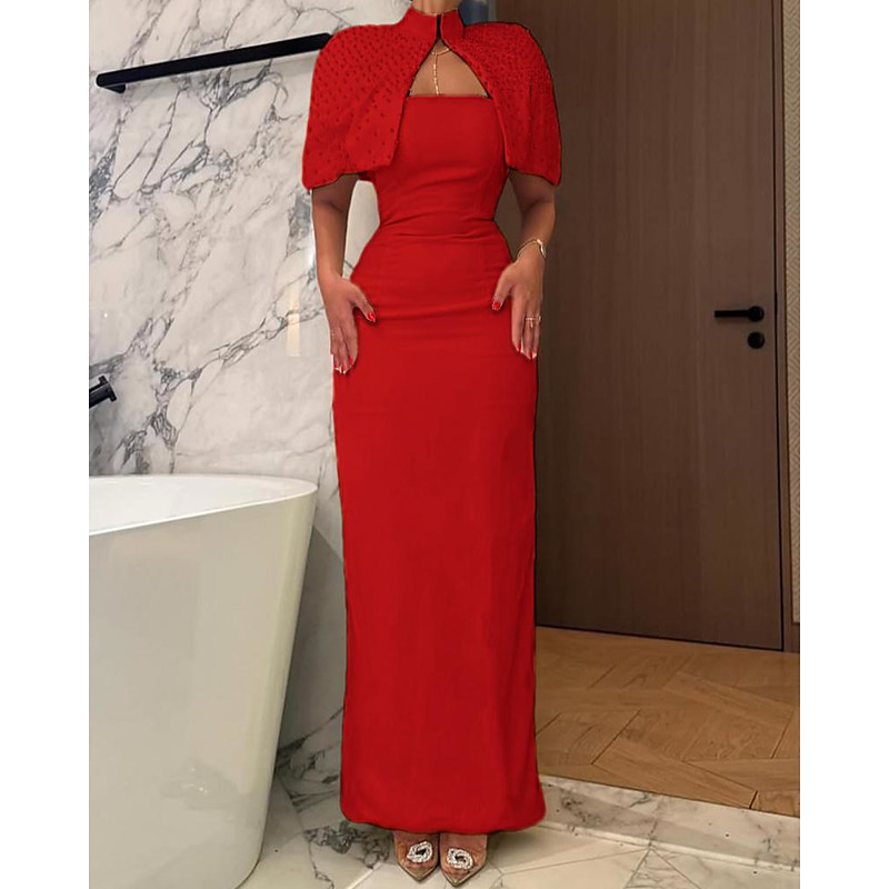 Cape Dress Crystal Mermaid / Trumpet Evening Gown Detachable Cape Elegant Dress Formal Semi Formal Wedding Floor Length Sleeveless Mock Neck Stretch Crepe
