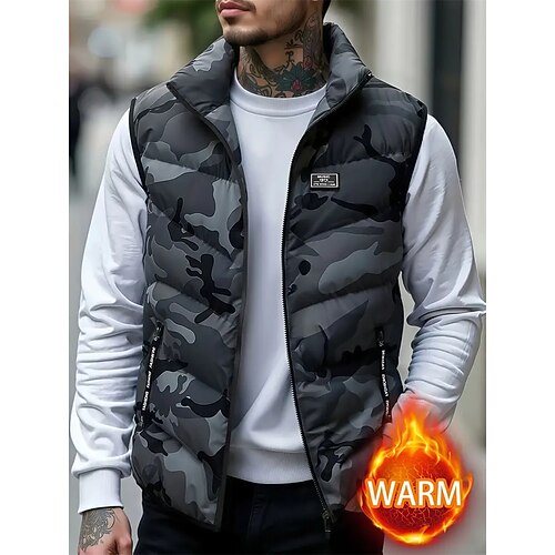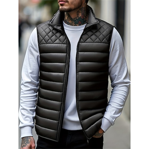 Per uomo Gilet imbottito Gilet Gilet trapuntato Giornaliero Appuntamento Da mare Di tendenza Informale Autunno inverno Tasche Poliestere Tenere al caldo Comodo Tinta unica Cerniera Colletto alla