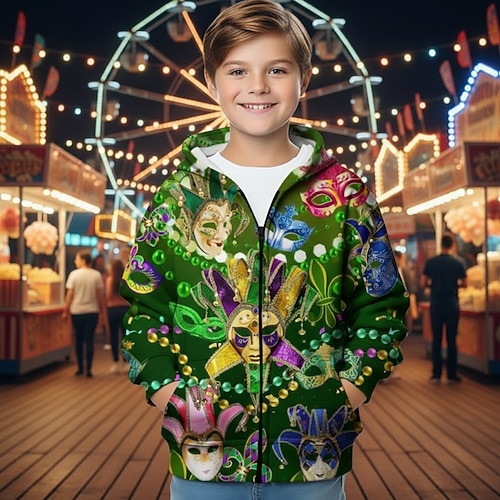 Carnevale Ragazzi 3D Grafico Maschera Martedì grasso Felpa con Cappuccio Abbigliamento Esterno Manica Lunga Stampa 3D Primavera Autunno Sport Moda Streetwear Bambini 4-12 Anni Con cappuccio Casuale