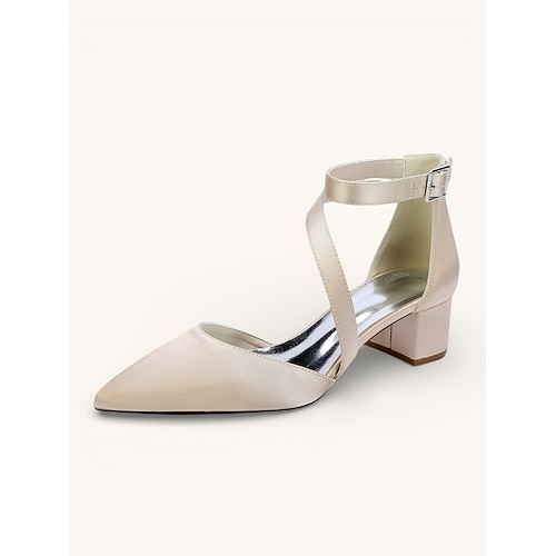 Scarpe da sposa da donna color champagne, décolleté a punta con tacco basso e cinturino alla caviglia con cristalli, eleganti e comode scarpe eleganti