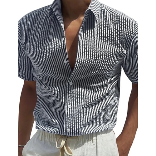 Per uomo Camicia button-down Camicia casual Camicia di Seersucker Nero Giallo Verde chiaro Rosa Viola Manica Corta A righe Bavero Casuale Quotidiano Bottoni Abbigliamento Streetwear Casual