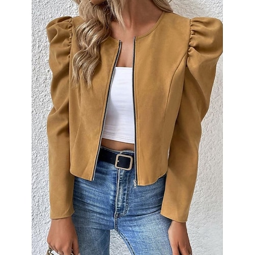 Damen Freizeitjacke Bequem Atmungsaktiv Reißverschluss Lässig Einfarbig Urlaub Straße Alltagskleidung Ausgehen Reisverschluss Kurz Rundhalsausschnitt Normale Passform Langarm Oberbekleidung Schwarz