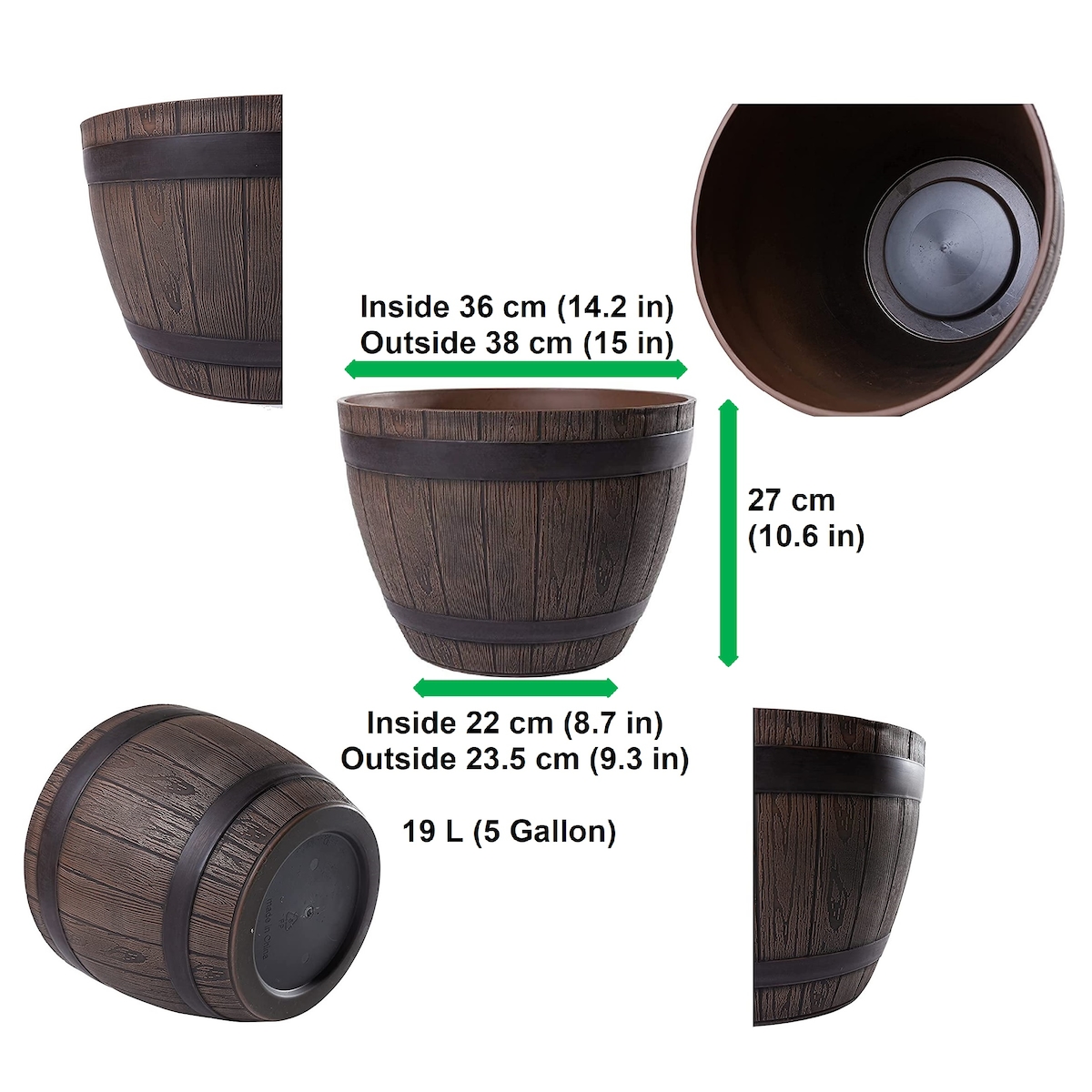 H&D Manufaktur Jinfa Pflanzkübel aus Kunststoff in Weinfass-Optik, Kastanie, Ø 38 cm – Ideal für Miniteich, Garten & Terrasse