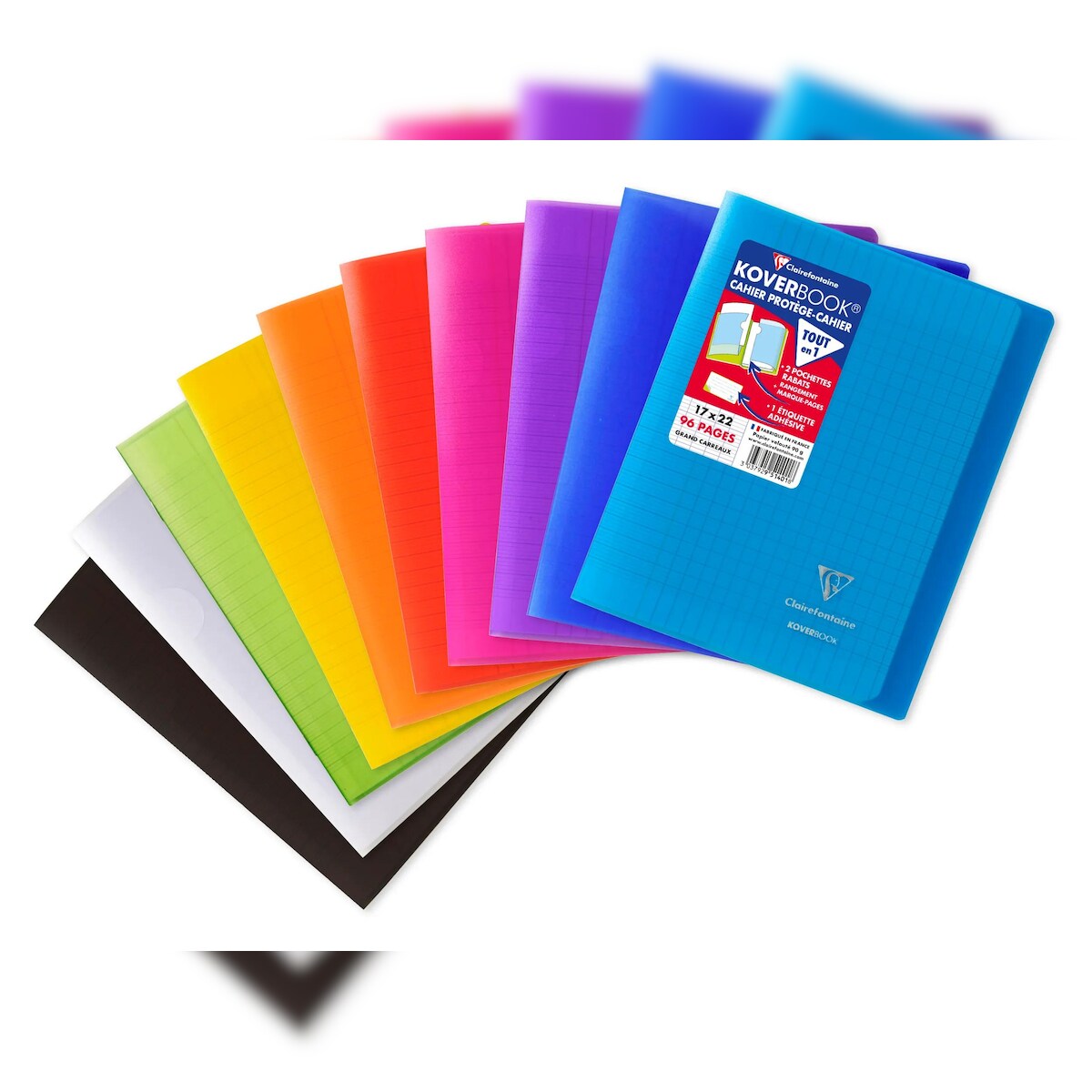 Clairefontaine 40x Koverbook, Heft 17x22 cm, 48 Blatt 90g, französische Lineatur Seyès, Einband aus transparentem Polypropylen - Sortiert 951401C