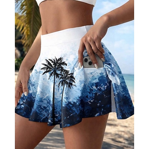 Per donna Gonna da vacanza Gonna da tennis Elegante Moda Carino Abbigliamento da Spiaggia Mini Vita Alta Gonne Floreale Grafico Alta elasticità Quotidiano Spiaggia Bianco blu Estate 95% poliestere