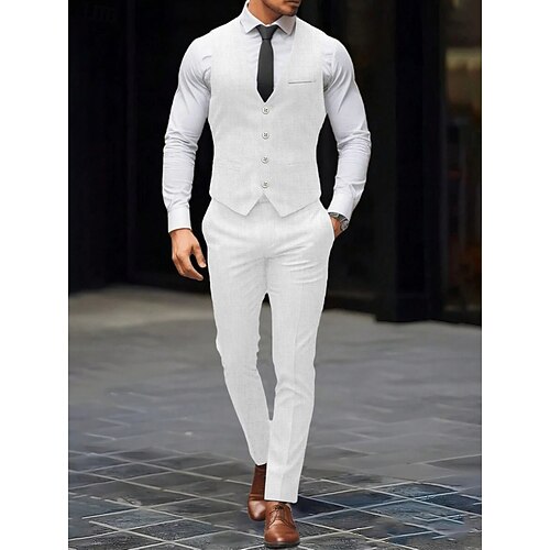 Uomo Completi Matrimonio Abbigliamento da sera Nero Bianco Primavera, Autunno, Inverno, Estate Tuta Moda Quotidiano Tinta unita Vestibilità standard 2 pezzi