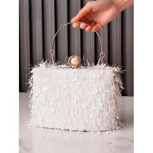 borsa da donna per le feste di Natale – elegante borsa da sera con piume rosse e verdi, manico dorato e chiusura in perla – regalo di festa per le donne – stile festoso chic per le celebrazioni natalizie