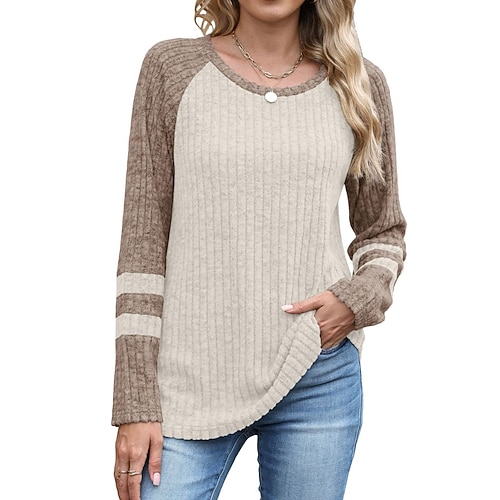 Per donna Blusa Blocco di colori Elegante Casual Manica Lunga Girocollo Top Regolari Quotidiano Patchwork Blu Nero Viola Marrone Verde Primavera Autunno Inverno