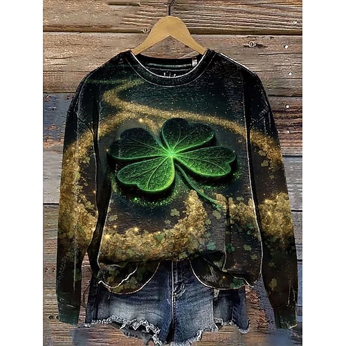 Per donna Felpa Pullover Grafico Trifoglio Casual Manica Lunga Girocollo Top Regolari Casuale Streetwear Abbigliamento Quotidiano Nero Oro Verde Autunno Inverno