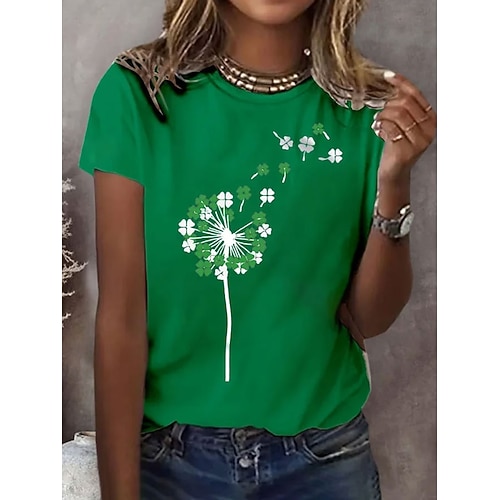 Festa di San Patrizio Per donna Maglietta Grafico Trifoglio Elegante Classico Casual Manica Corta Girocollo Top Regolari Quotidiano Stampato Nero Bianco Verde Estate Primavera