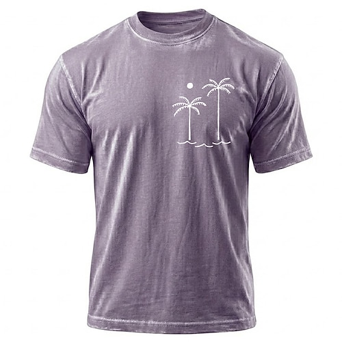Per uomo Hawaii Palma di Cocco Maglietta Maglietta per lavaggio minerali Manica Corta maglietta Lavaggio acido Girocollo Camicia Vacanza Vintage Retrò Casuale Spiaggia Viaggio Blu Viola Grigio Estate