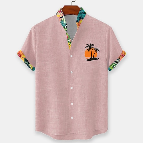 Per uomo Camicia Camicia di lino Camicia Estiva Camicia da Spiaggia Camicia con Bottoni Albero di Cocco Vacanza Casuale Nero Bianco Verde chiaro Rosa Manica Corta Collo ripiegato Estate Abbigliamento