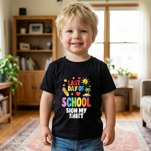 100% Cotone Bambini Ragazzi Nero Grafico Albero di Cocco Lettera Maglietta Blusa Girocollo Manica Corta All'aperto Abbigliamento Quotidiano Moda Streetwear Designer Stampa Estate Primavera