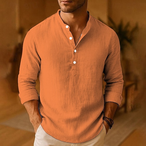 Per uomo Camicia Camicia di lino Camicia popover Camicia casual Camicia di cotone Semplice Vacanza Camicia hawaiana Nero Bianco Rosa Arancione Manica Lunga Colletto alla coreana Primavera Autunno