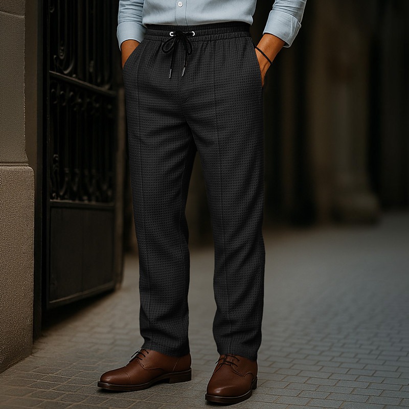 Men's Waffle Trousers Baggy Pants Buttons Plain Wearable Full Length Outdoor Daily Camping Hiking Vacation Fashion Black White