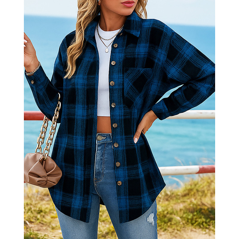 Per donna Giacca Camicia Confortevole Traspirante Bottoni Stampato Casual Plaid Vacanza Streetwear Casuale Abbigliamento quotidiano Monopetto Lungo Collo ripiegato Vestibilità regolare Manica Lunga
