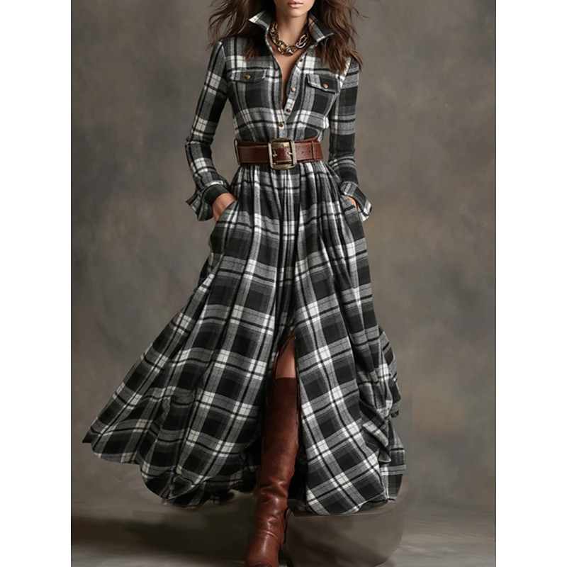 Women's Plaid Skirt Long Skirt Elegant Retro Vintage Maxi High Waist Skirts Plaid Color Block Pocket Long Micro-elastic Daily Casual Daily Blue Red Green Khaki Fall 100% Polyester