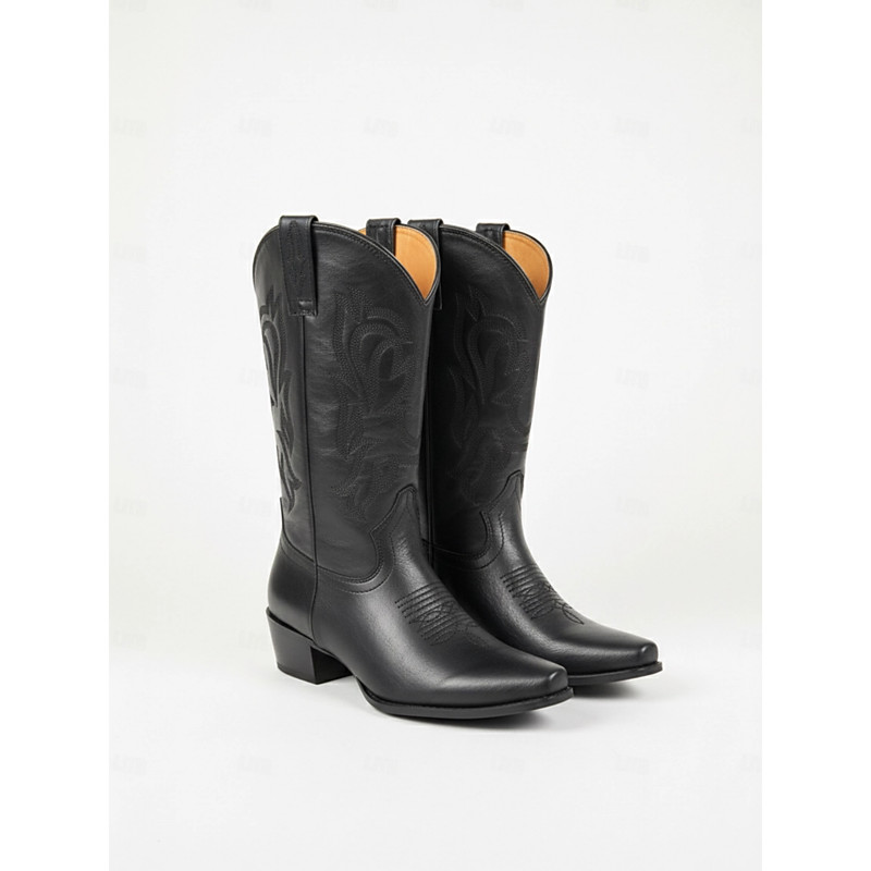 Women's Red Faux Leather Embroidered Cowboy Boots with Floral Design, Block Heel, Retro Western Style, Perfect for Festivals, Casual Outings and Christmas