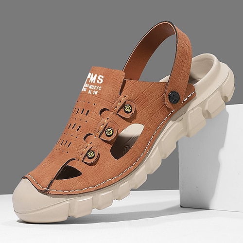 Sandali da uomo in similpelle color cuoio con cinturino regolabile, traspiranti, ideali per l'estate, le vacanze e il tempo libero.