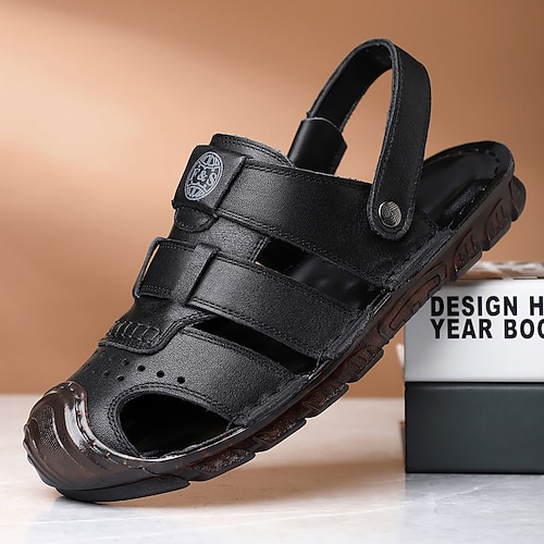 Per uomo Sandali Sandali in pelle Taglie forti Scarpe fatte a mano Scarpe comfort Footing Informale Spiaggia Pelle Traspirante Mocassino Fibbia Marrone scuro Nero Marrone Estate Primavera