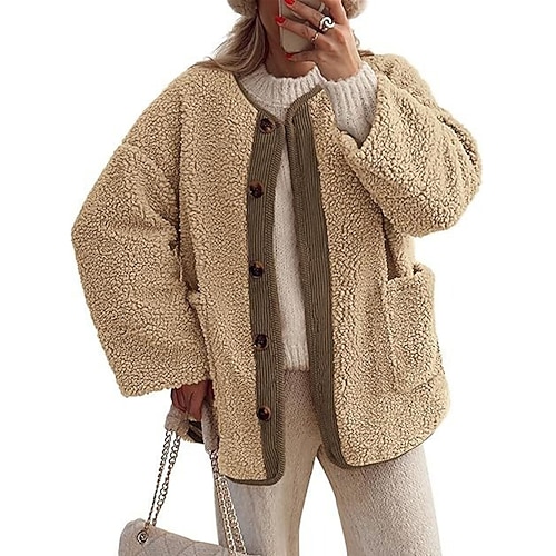 Per donna Cappotto Invernale Giacca Sherpa Giacca Casual Caldo Confortevole Tasca Bottoni Moda Casual Semplice Vacanza Streetwear Casuale Abbigliamento quotidiano Monopetto Regolare Senza colletto