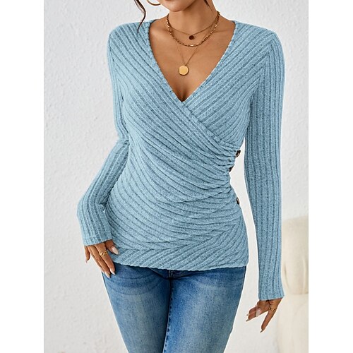 Per donna Blusa Tinta unica Elegante Casual Manica Lunga Scollo a V Top Regolari Quotidiano Bottoni Bianco Giallo Rosa Verde Estate Primavera Autunno