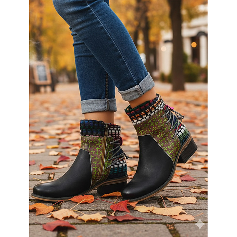 Women's Bohemian Green Ankle Boots - Handmade with Ethnic Patterns, Perfect for Festival Daily Wear